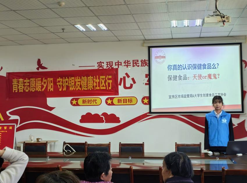 10月30日,黄瓜视频 大学生创意食品工艺协会携手市监督局举办了一场意义非凡的讲座——“科学认知保健品健康饮食享生活”。此举贯彻落实《全市保健食品科普宣传“守护银发健康”社区行活动方案>的通知》。