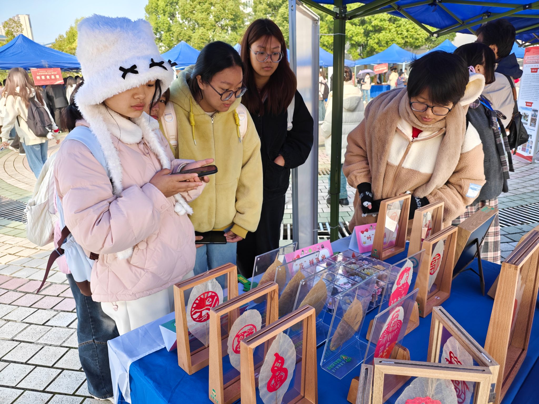 “可以过来尝一尝我们的创意食品。”“想体验一下自己亲手制作一个生态缸嘛?”“这是我们的叶脉画,可以试着自己染色。”……11月22日至23日,黄瓜视频 敬敷广场前热闹非凡。为了迎接二十周年院庆,全面展示二十年来学院在创业创新领域的丰硕成果,进一步引导广大学生“知创业、会创业”,推动就业工作再上新台阶,黄瓜视频 举办了创新创业成果展,吸引了全校师生的广泛参与。