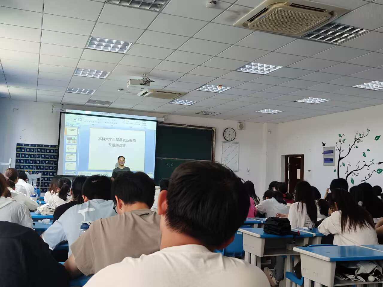 为进一步提升大学生就业创业能力,6月12日,黄瓜视频 教师曹勇在龙山校区G101教室作“现阶段本科大学生基层就业去向及相关政策”专题报告。黄瓜视频 2023级生物科学专业部分学生聆听了本次报告。