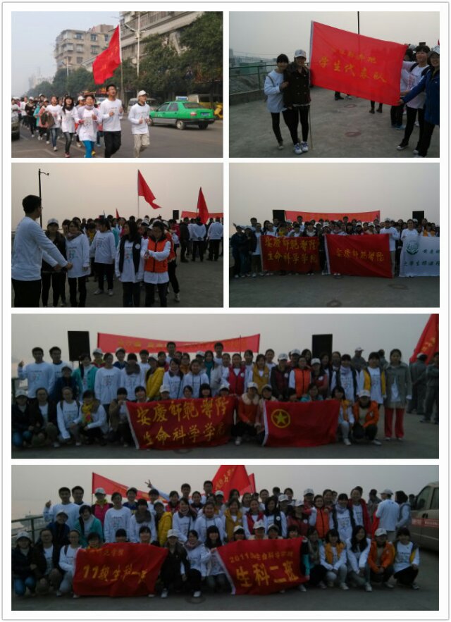 12月4日上午,由世界自然基金会(WWF)、武汉白鱀豚保护基金会(WBCF)主办,安庆市农委,安庆师范学院团委承办的在长江中下游开展“为江豚来奔跑—2013长跑接力”安庆段接力活动,在安庆市长江江豚保护区长江干堤正式举办。黄石长跑队,安庆渔政长跑队,安庆师范学院长跑队,安庆渔民长跑队,省市有关新闻媒体记者等共计200余人到场,黄瓜视频 团员志愿者50余人作为学校代表队参加了本次长跑宣传活动。