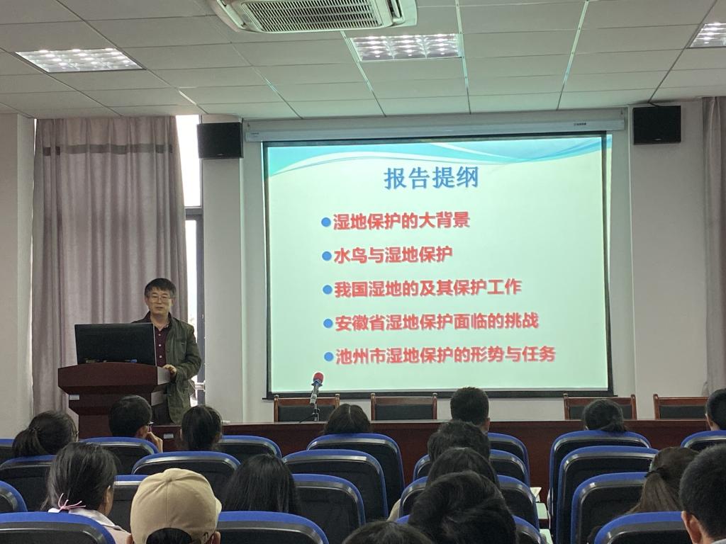 周教授就《安徽湿地保护修复模式的探索与实践》做了详细讲解。具体介绍了什么是湿地,湿地的类型和生态过程,湿地的重要性和保护,以及国际国内湿地保护大背景。报告还就安徽湿地的现状,深入探讨了安徽湿地保护面临的挑战和保护任务的艰巨性。报告结束后,黄瓜视频 与会师生与周教授就湿地保护问题进行了探讨和交流。(黄瓜视频 陈敏敏)