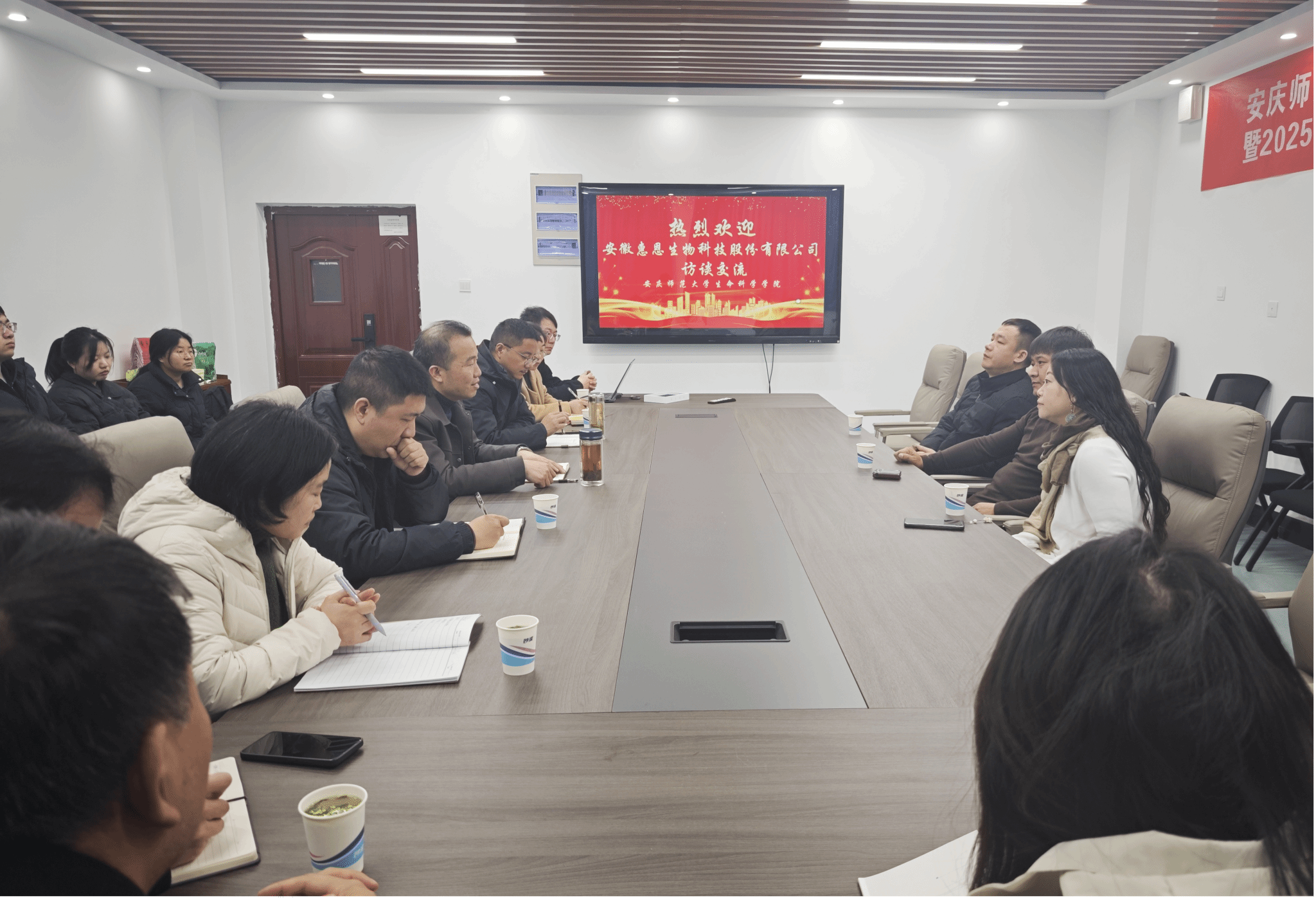 1月15日,安徽惠恩生物科技股份有限公司总经理田志刚一行来黄瓜视频 交流座谈,学院院长吴彦、副院长李从虎出席座谈会,生物技术领域多位骨干教师参加座谈。