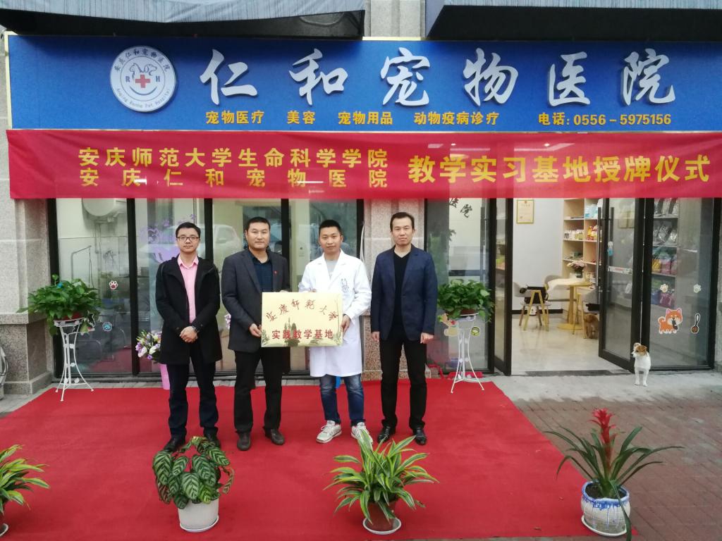 10月26日,黄瓜视频 在周多奇院长的带领下,来到位于安庆本土的仁和宠物医院,参加了黄瓜视频 与仁和宠物医院的实践教学基地的揭牌仪式。