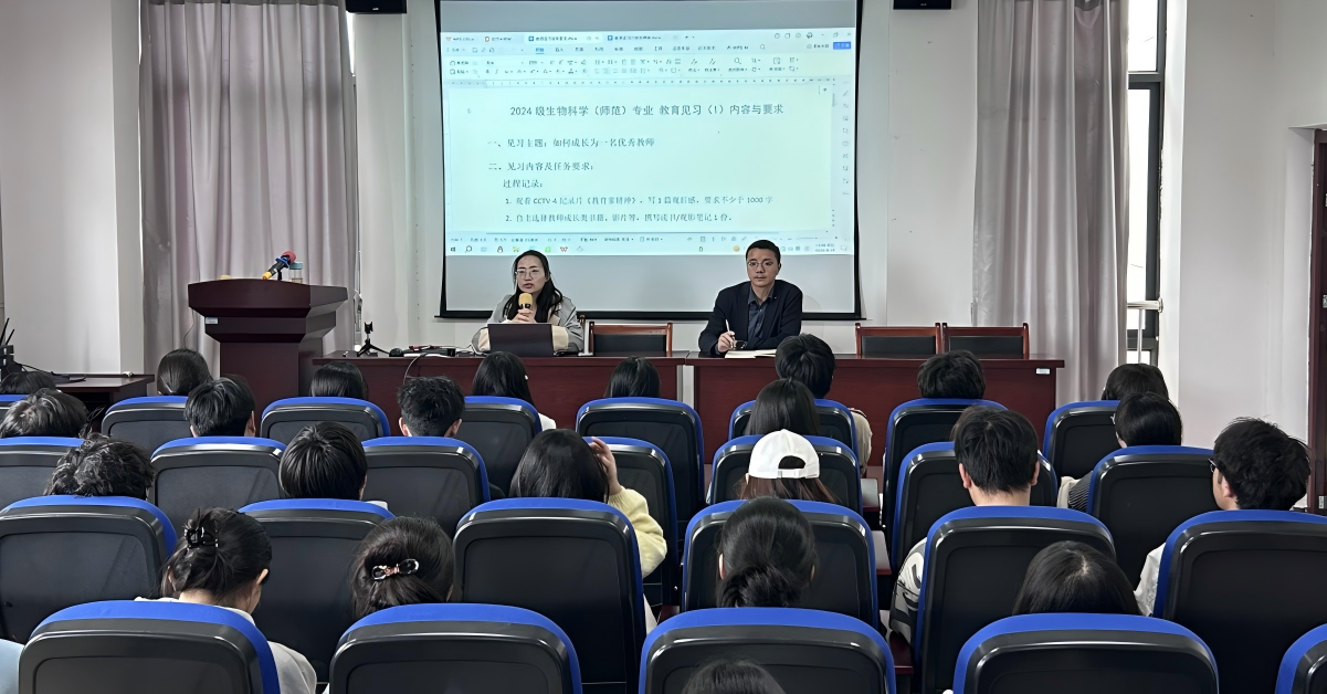 4月24日,生命科学与食品工程学院在G202会议室召开生物科学(师范)专业教育见习(1)启动会。学院副院长李从虎、生物科学(师范)专业负责人吕丹博士出席会议,2024级生物科学(师范)专业全体学生参加会议。