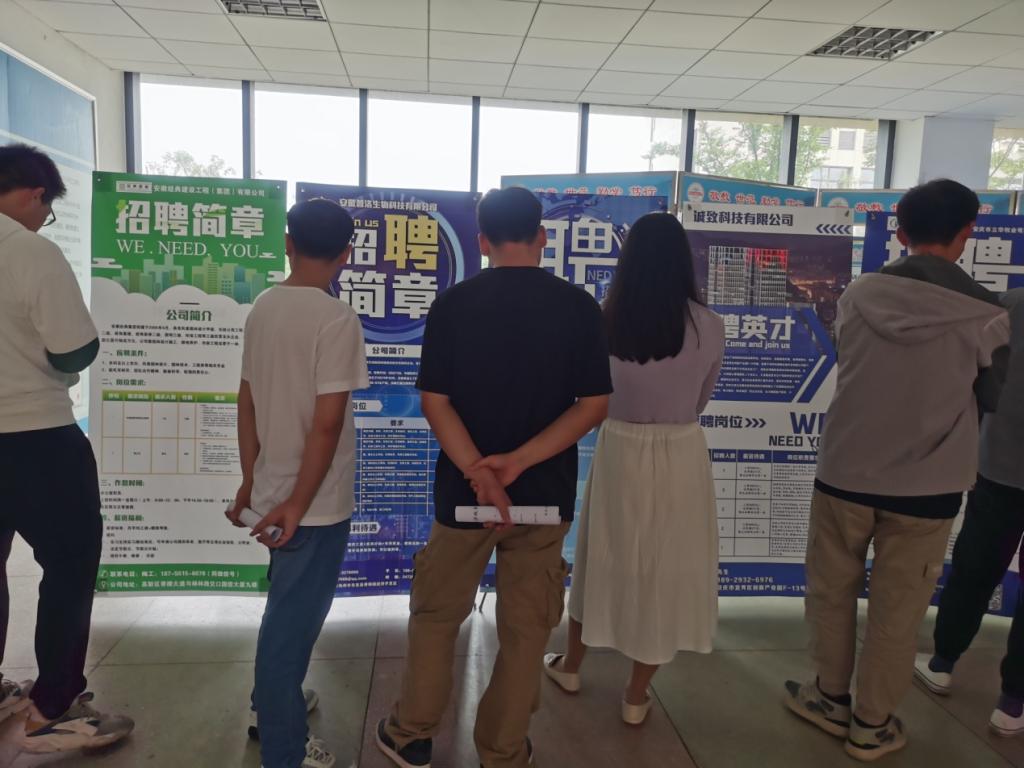 学院经过前期调研,根据学生意愿,组织邀请了安徽经典集团、通用生物、永强集团、安徽普洛生物科技有限公司等近20家企业提供了招聘信息,开展招聘活动。由于疫情影响,招聘活动改为线下展台和线上招聘相结合的方式开展。学院为每一个企业制作了招聘展牌,毕业生线下观看招聘信息,在线上与感兴趣的企业进行交流对接。各班未就业学生积极参与了招聘活动。