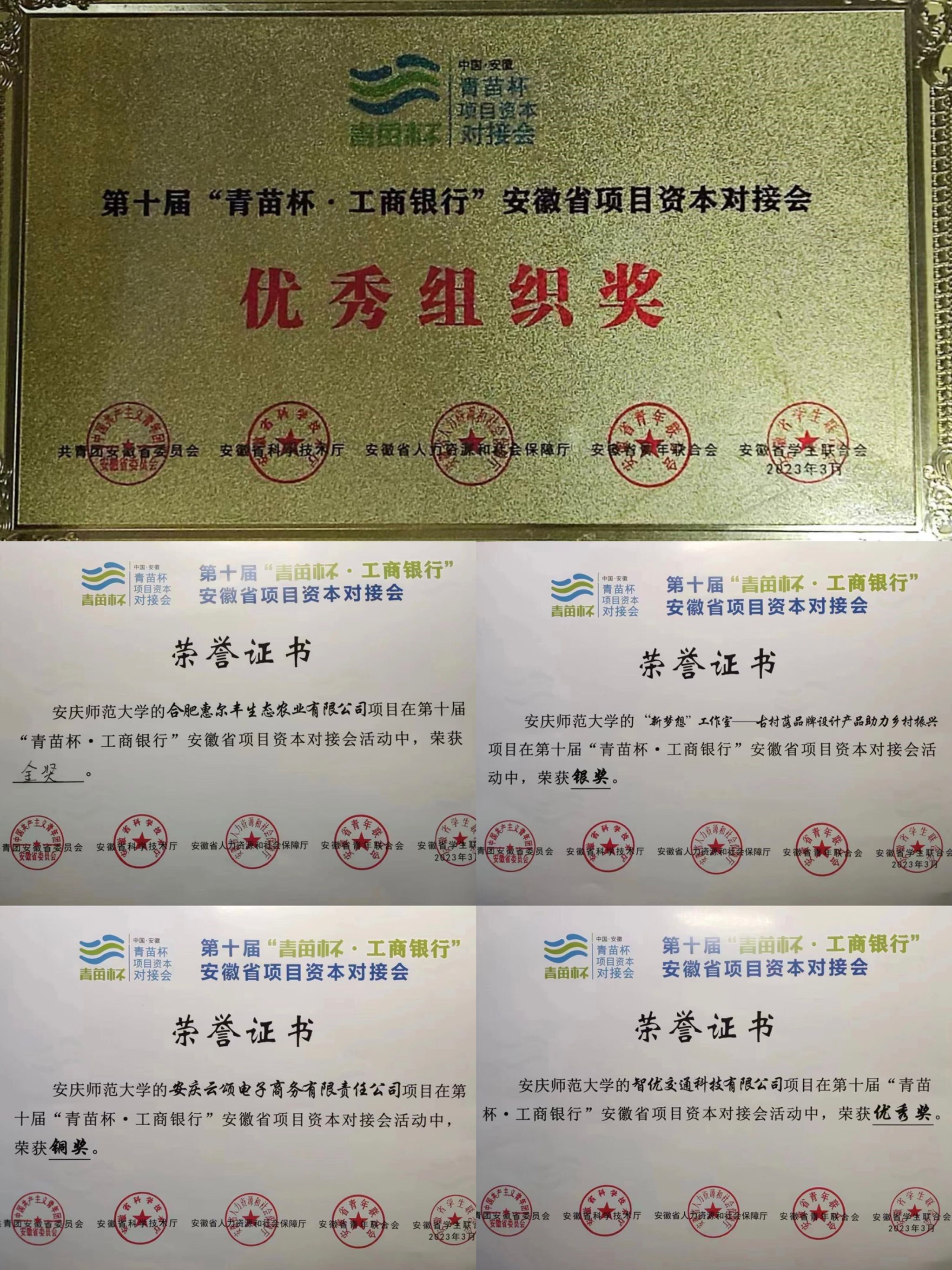 3月2日,第十届“青苗杯”安徽省项目资本对接会在合肥中安创谷科技园举办。黄瓜视频 学生创业项目获金奖1项、银奖1项、铜奖1项、优秀奖1项,学校荣获“优秀组织奖”。