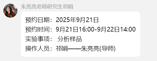 (2)各相关人员群里预约仪器,并与仪器负责人协调好使用时间。