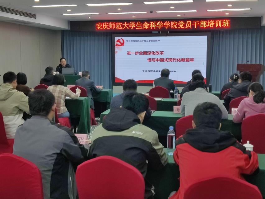 理论教学环节,杨前智副校长以《进一步全面深化改革 谱写中国式现代化新篇章》为题,全面总结了改革开放以来党的历届三中全会的主题和重大决定,深刻阐述了党的二十届三中全会关于进一步全面深化改革推进中国式现代化的系统部署,使全体党员对党的二十届三中全会精神有了更加深刻的理解和认识。