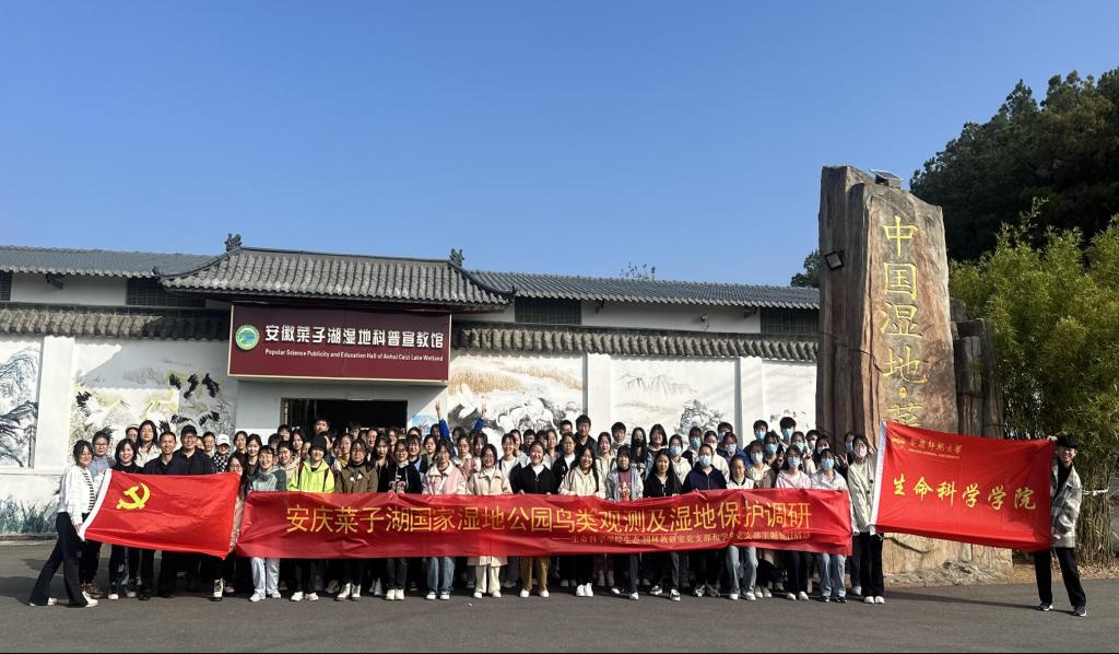为进一步贯彻落实习近平生态文明思想,深刻领悟“生态兴则文明兴、生态衰则文明衰,人与自然和谐共生的新生态自然观”。11月20日,黄瓜视频 生态教研室党支部、学生党支部联合学院生态俱乐部,带领部分入党积极分子和大一新生到安庆市菜子湖国家湿地公园进行湿地鸟类观赏和生态环境问题调研活动。