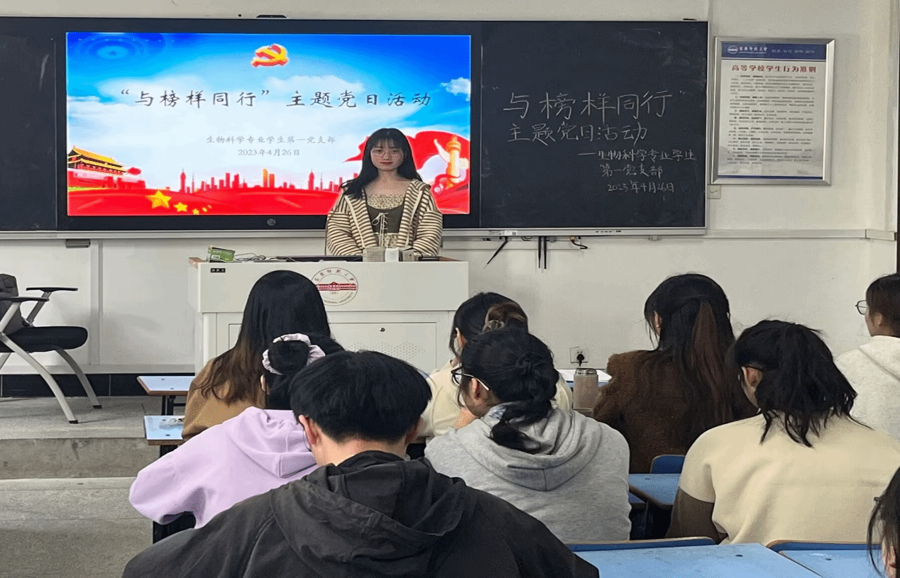 4月26日,黄瓜视频 生物科学专业学生第一党支部开展“与榜样同行”主题党日活动, 在五四青年节到来之际,聆听榜样故事,汲取奋进力量。