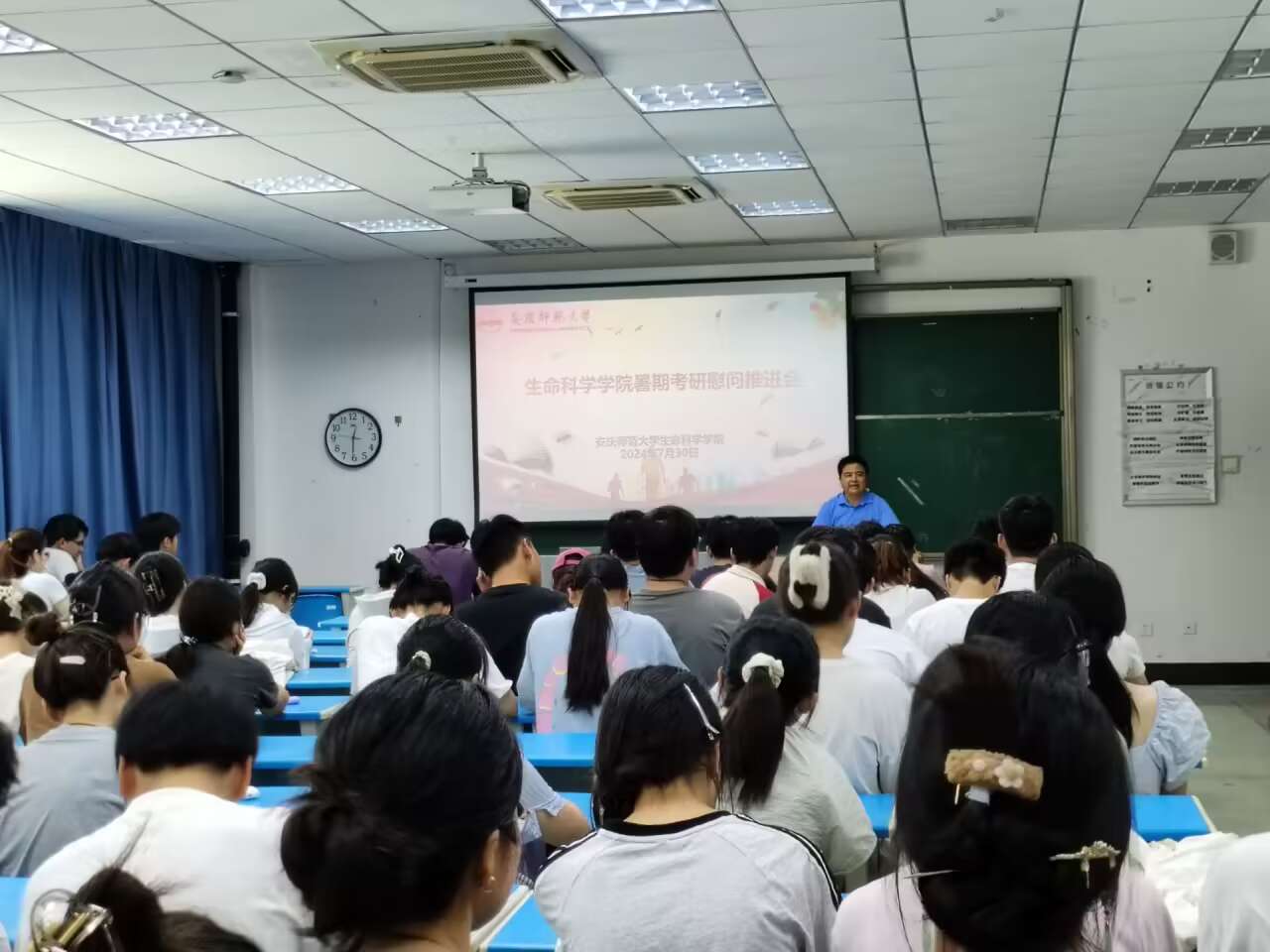 7月30日,黄瓜视频 在G103举办考研工作推进会暨暑期慰问会,深入了解留校考研学生的思想动态和学习生活情况,不断推进“五段推进+三率共抓”的考研支持服务体系走深走实。学院党委副书记张辉和团委负责人参加会议。