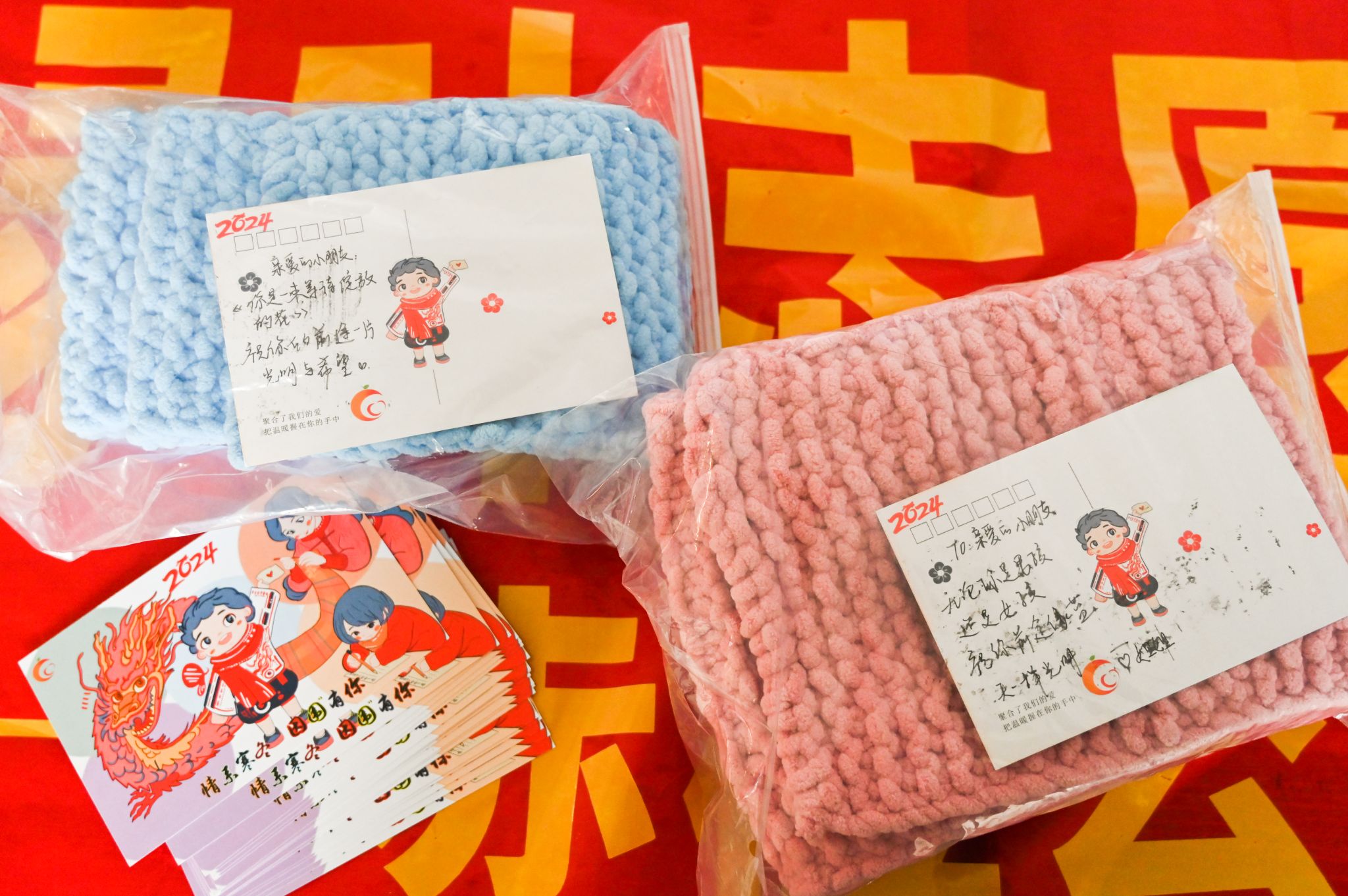每一条围巾、每一份祝福都饱含着志愿者们浓浓的爱。“希望我们的围巾可以带着大家的祝福和爱心,为山区的孩子们送去这份独特的冬日礼物,为他们的冬天可以再添一份温暖。”志愿者、生物科学专业2024(2)班的王婉婷说。(撰稿:马士蕊 摄影:夏雪 审核:张辉)