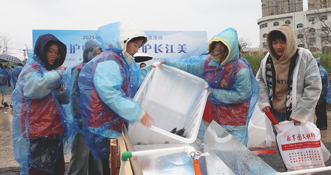 上午九点,长江安庆段江面雾气氤氲,细雨绵绵。十余名志愿者身着统一红色马甲,将最后一箱中华鲟幼鱼抬至江边。这些体长不足30厘米的小鱼背部闪烁着银色微光,在供氧箱中奋力摆尾。随着一声“放流开始”,525尾中华鲟和20000尾胭脂鱼顺着特制的滑道跃入江水,激起一片细碎的水花。“他们的洄游之路要跨越2000公里,而我们的守护之路,从今天开始。”望着远去的鱼群,学院水生态监测与修复团队成员、生态学专业2024级研究生张文龙说。