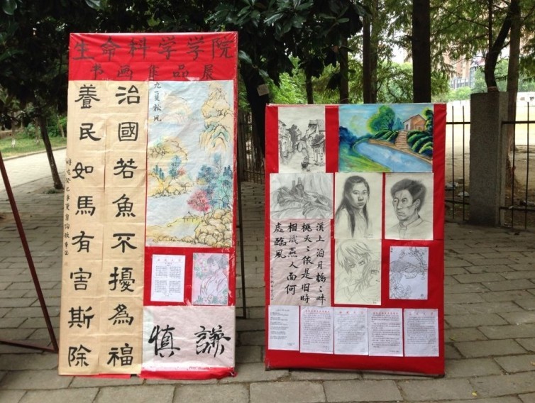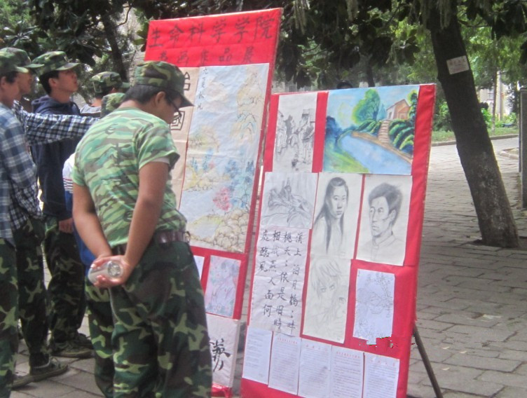 2013年9月29日中午,经过院学生会宣传部的精心评选,一批书画精品终于在菱湖校区31栋宿舍楼前展出,期间吸引了路过的众多同学驻足观赏。本次书画大赛共征集了近百幅作品,分书法和绘画两个大类,分别有楷书、行书、隶书、水墨画、油彩画、素描、硬笔书法等各种形式作品,其中不乏优秀作品,如12级园林的裴文静同学的水彩山水画及11级生科1班的汪语梵同学的硬笔楷书,都给同学们留下了深刻的印象。