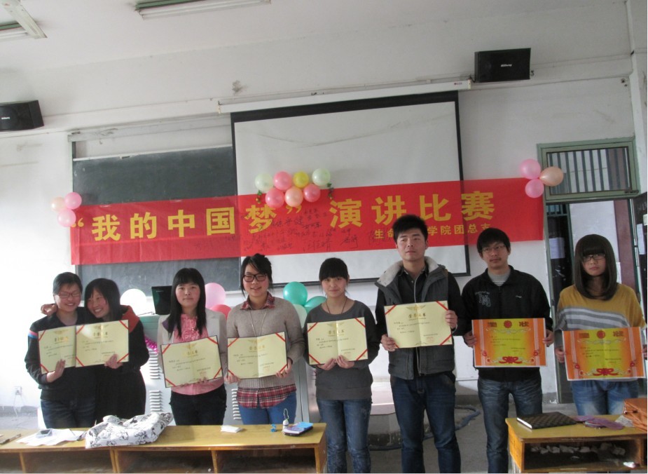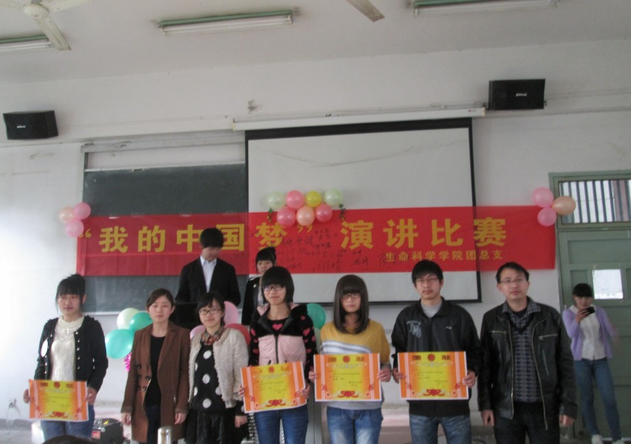 为了深入学习贯彻习近平主席“中国梦”思想发言,增强当代大学生的爱国主义精神,提高学生综合素质,丰富校园生活。4月10日下午,黄瓜视频 在菱湖校区教学楼215教室成功举办了“我的中国梦”演讲比赛。此次大赛邀请了生科院数位老师担任评委。