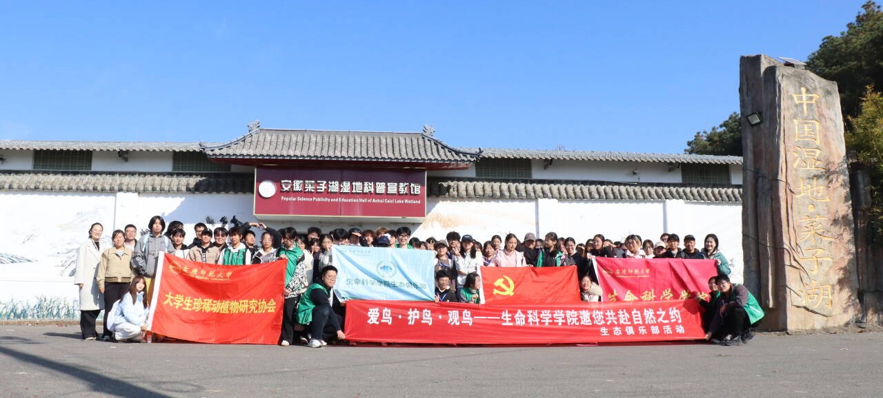 鸟类专家朱永可与潘扬,带领大家学习参观安庆菜子湖国家湿地公园宣教馆与标本陈列室。通过丰富的图文资料、精致的动植物标本与老师的耐心讲解,同学们系统学习了菜子湖湿地的形成演变、生态功能及其在候鸟迁徙网络中的关键地位,对接下来即将开展的实地观鸟活动有了更为全面的知识储备。