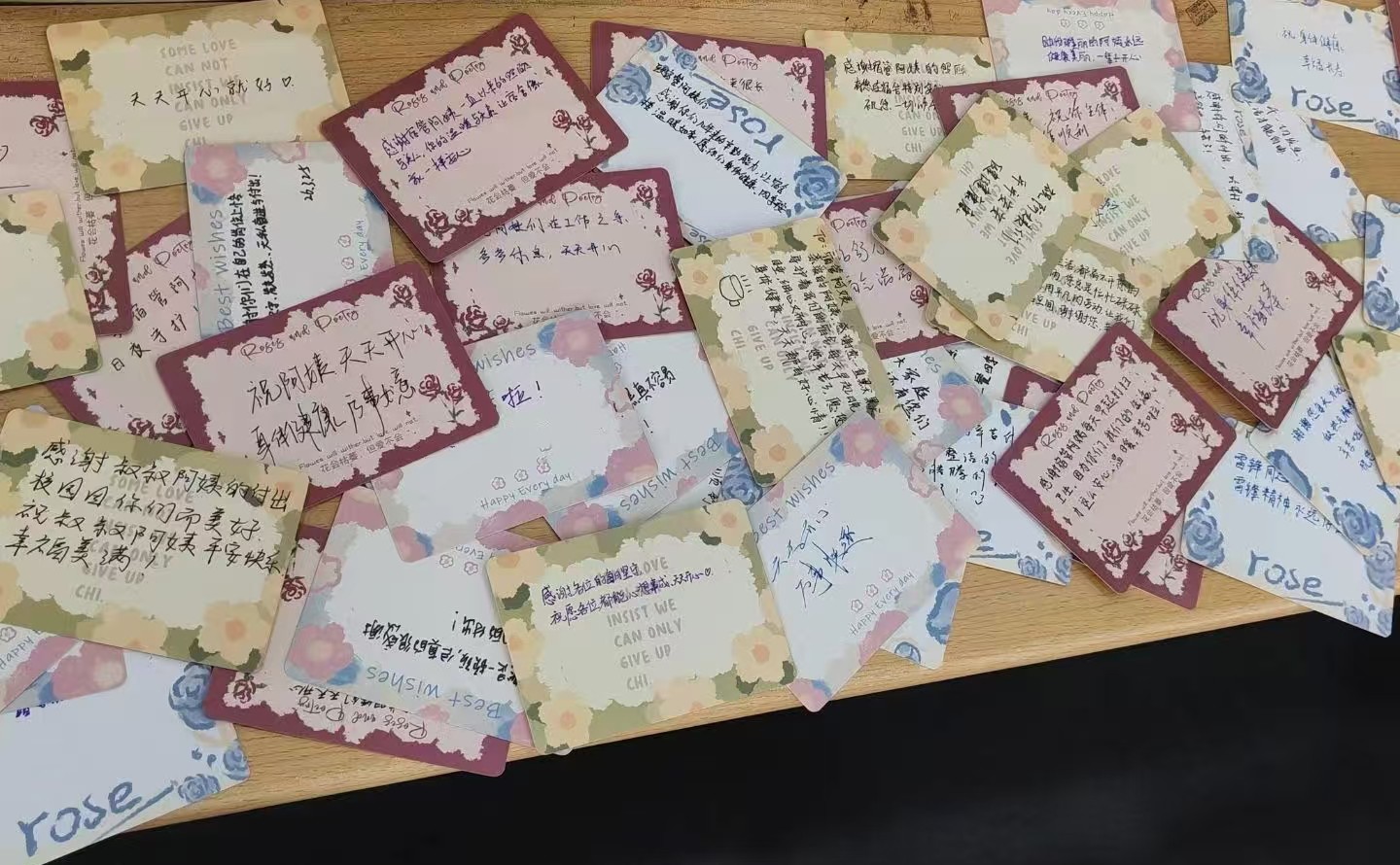 此次活动以手写暖心卡片为核心形式,同学们积极参与认真书写,将对宿管,保洁,食堂工作人员的感谢诉诸笔端。从“感谢深夜值守的星光,守护校园的安宁”到“感恩三餐的烟火,温暖求学的日常”,一张张卡片字迹各异,却都饱含着真挚的情感,围绕校园日常服务的点滴,传递着青年学子对校园工作者默默付出的认可与敬意。