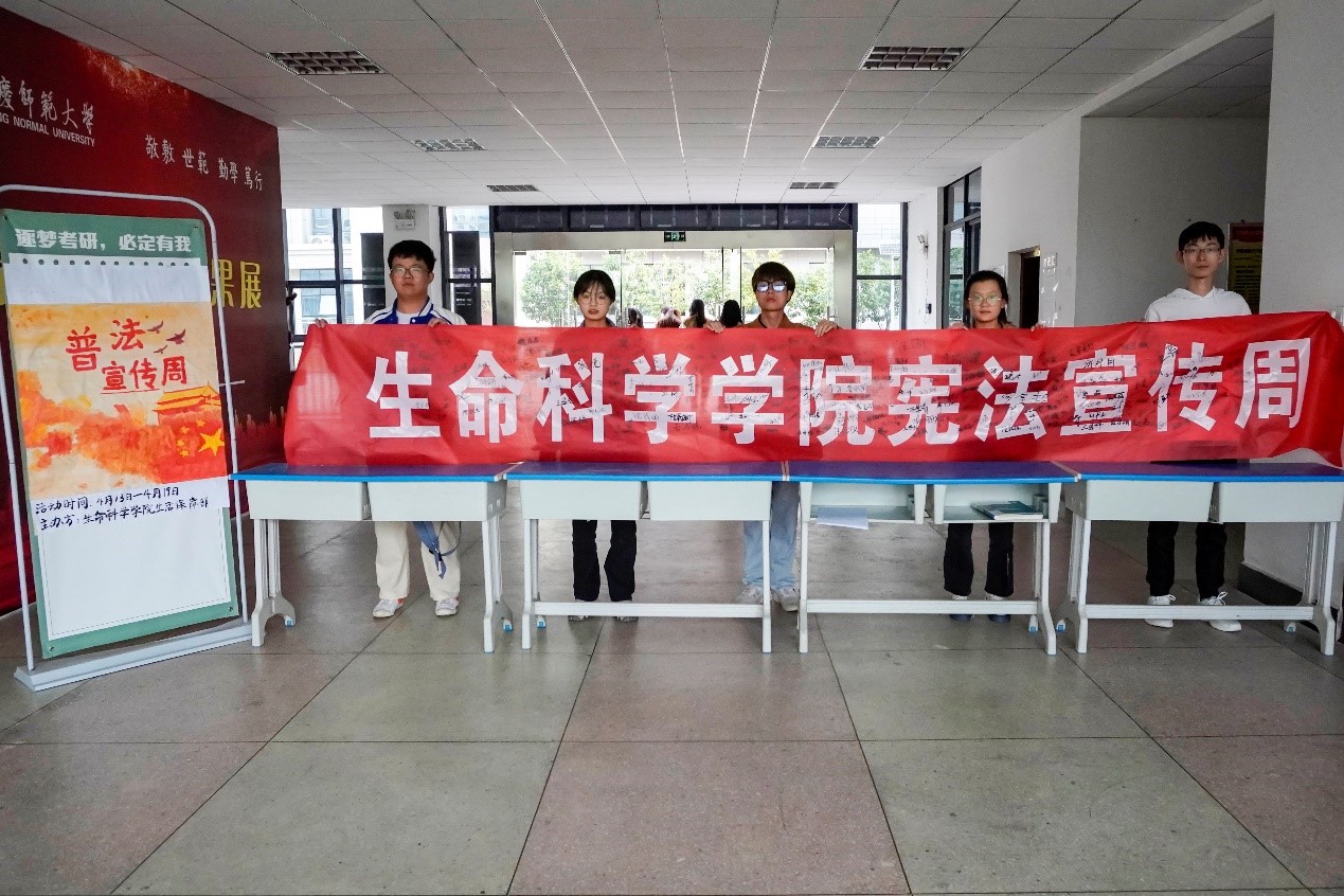 “维护宪法权威”“遵纪守法,从我做起”“学法人人受益,守法处处和谐”……活动在学生们的宣誓声中拉开了序幕,他们在负责人们准备的红色横幅上签下自己的名字并进行宣誓。生物科学专业2021(4)班的杨子琼是其中的一员,她表示,签名宣誓活动增强了自己维护宪法权威的责任感,在横幅上签下的不仅是自己的名字,更是对宪法的尊重,也是表明一种学法守法的决心。“今后我也会继续努力学习各种宪法知识,做一个遵守宪法的好青年。”