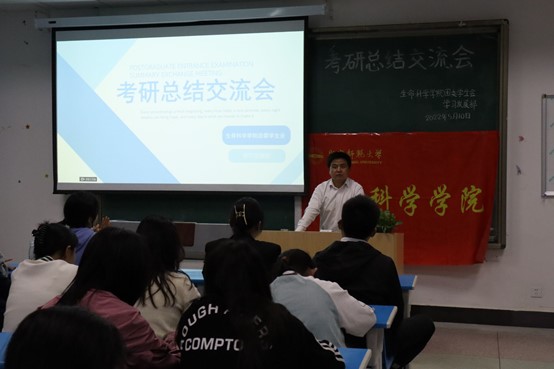 考研学生代表高旭、朱星雨等八位同学,分别结合自己考研经历跟学弟学妹们进行了交流,分享了各门课程的学习方法、考研时间安排、如何选报学校和专业、跨专业考研的注意事项、考研心理调适以及面试技巧等。大家一致认为考研贵在专注、坚持、踏实、自信、努力,切忌盲目跟风;同时多与读研的学长、学姐联系,及时获取考研信息;建立自己的学习方法,提高效率、劳逸结合、按部就班、切忌急躁。
