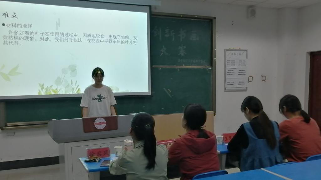 杜英、玉兰等新鲜植物“摇身成”绚丽多彩的孔雀,枯枝落叶“重组成”生机焕发的小鹿,5月23日黄瓜视频 在G103举办 “创新书画大赛”,同学们妙手生花,用生物作画,呈现出许多既有专业内涵,又有艺术美感的创新书画作品。