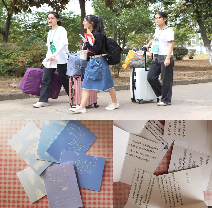 提前挑选卡片、收集新生信息、安排志愿者对接新生……迎接新生工作从两天前开始准备,志愿活动负责人、生物科学专业2020(2)班的朱彤介绍:班级平时乐于助人、甘于奉献、氛围浓厚,很多同学平时都积极参与志愿服务活动和“三下乡”实践中。这次在得知招募志愿者信息后,班上十几位同学主动报名,组建专门服务队,为延迟报到新生提供志愿服务。当谈及手写贺卡,她表示:我们要让延期入学新生同样感受到迎新的氛围,做到报道延迟,暖心不“延迟”,希望通过这种方式让新生们在入学第一天感受到来自学校和学院的温暖,开启大学新征程。