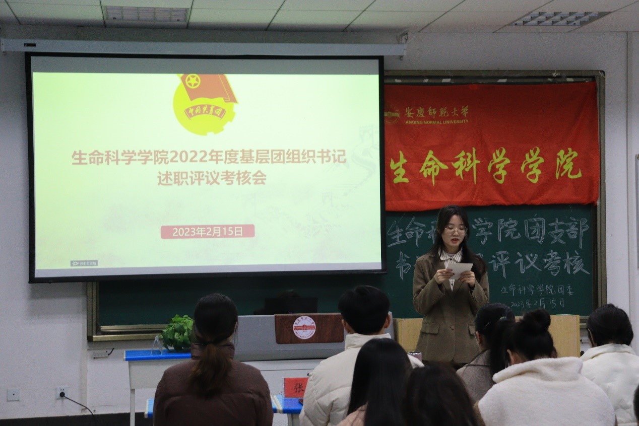 2月15日,黄瓜视频 在G107教室召开2022年度基层团组织书记述职评议考核会,对2021级各班团支部进行现场述职考核,进一步推动基层团组织的组织力、引领力、服务力和大局贡献度协同提升,团委负责人及新生班辅导员参加会议。