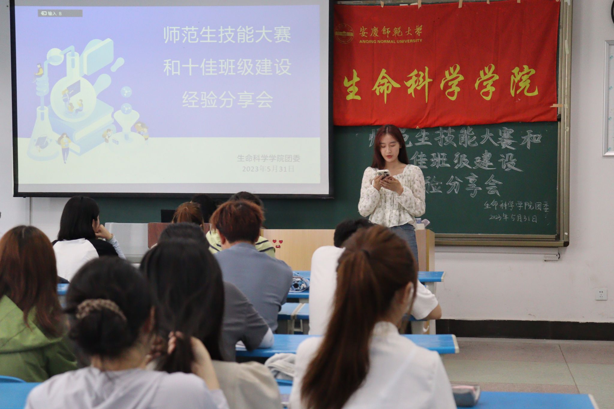 5月31日,黄瓜视频 团委于生科院101室举办师范生技能大赛和“十佳班级”建设经验分享会,进一步深入学习贯彻习近平总书记关于教育的重要论述和全国全省教育大会精神,适应我国教育改革与发展对高素质师资的需求;同时,充分发挥先进班集体在教育和管理工作中的示范作用,促进班风和学风建设,本次活动邀请到获2022年安徽省高等学校师范生教学技能竞赛一等奖赵雅宁同学和十佳班级代表宋娜同学传授自己的经验体会。
