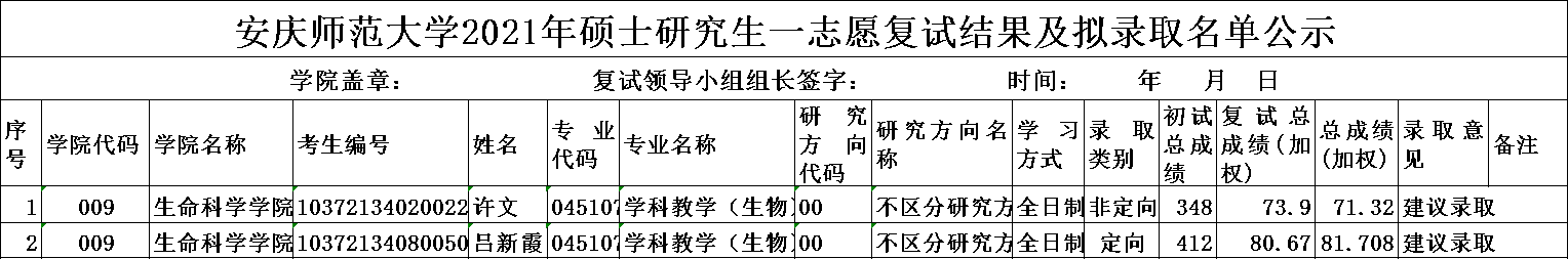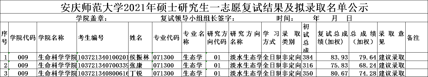 根据《黄瓜视频 2021年硕士研究生招生复试录取办法》等规定,现将生态学和学科教学(生物)专业一志愿复试结果及拟录取名单公示10天,公示时间从2021年4月1日开始。