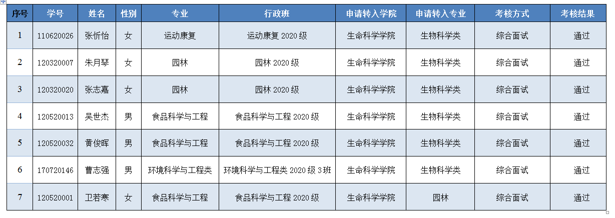 现将黄瓜视频 2020-2021学年转专业学生考核结果公示如下:
