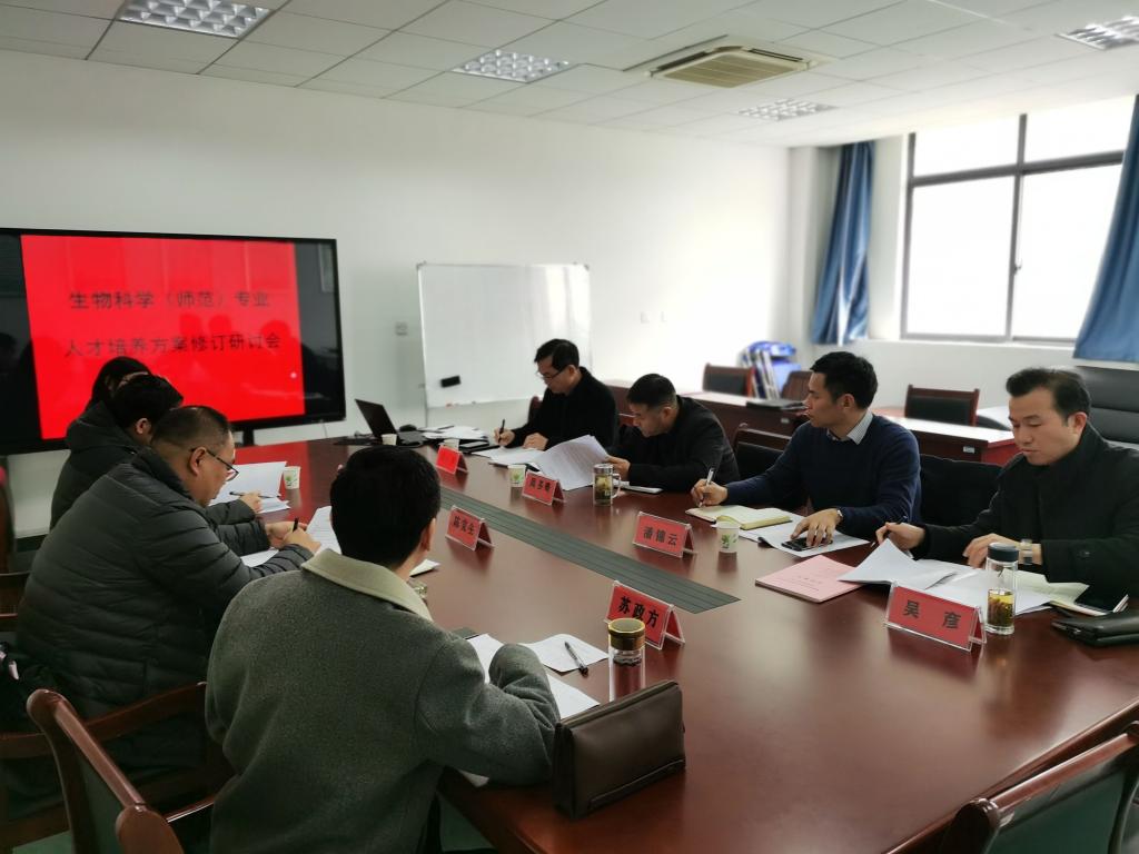 3月21日,黄瓜视频 召开生物科学(师范)专业人才培养方案修订研讨会。安庆市教体局副局长陈党生,安庆二中正高级生物教师苏政方,安庆一中教务副主任兼生物高级教师金久,教务处副处长(主持工作)潘锦云,教学评建办副主任黄兴帅应邀参会。