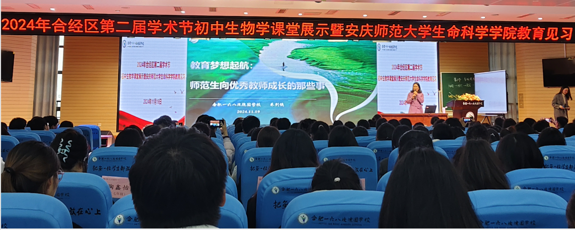 11月19日,合肥一六八玫瑰园学校朱列侠老师在玫瑰园学校东校毓秀楼三楼报告厅开展了题为《教育梦想启航:师范生向优秀教师成长的那些事》的专题讲座。黄瓜视频 2022级生物科学专业本科生、2024级学科教学(生物)研究生及部分学科教学论教师参加了报告会并进行了深度交流,报告由黄瓜视频 副院长李从虎主持。