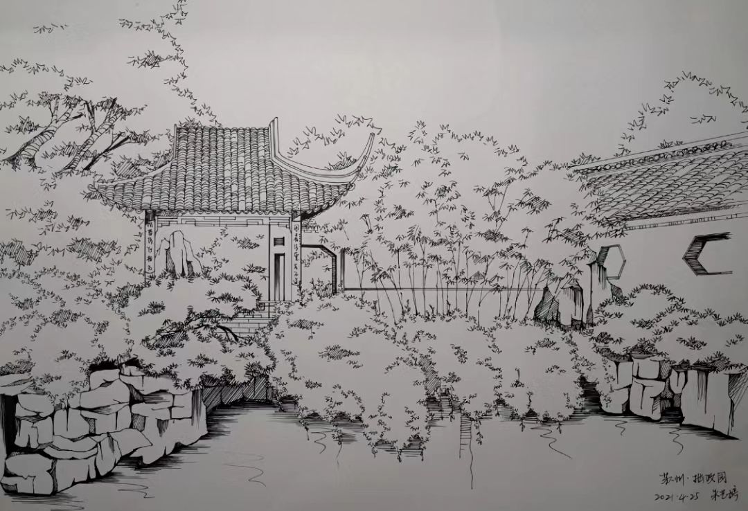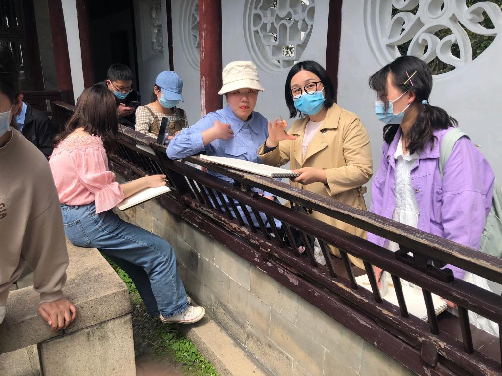 除了专业理论知识的学习以外,陈陈老师还带我们进行了实景写生指导,让我们近距离感受中国古典园林的建筑美与自然美的统一与融合,园林的植物景观,不管是漏窗、铺装还是匾额、条石、假山,都值得我们细细推敲、认真钻研,我们记录的不只是一处风景,更是一个故事,是历史的再现,文化的重蕴!