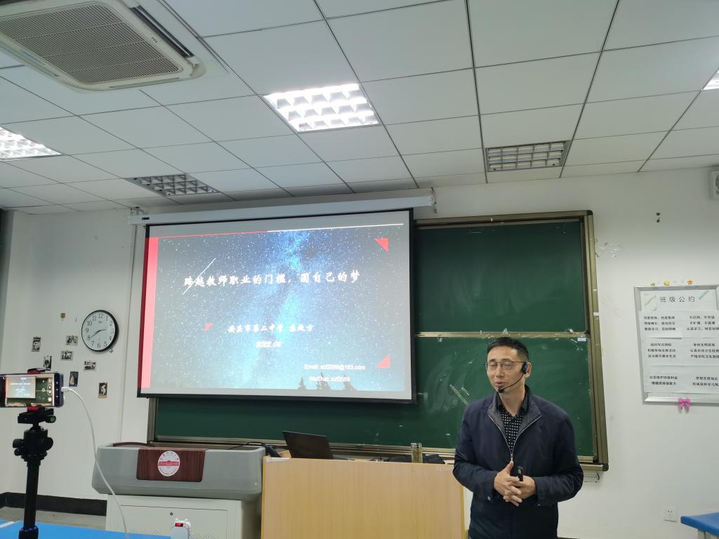 4月28日下午,安徽省特级教师、安庆二中正高级生物教师兼黄瓜视频 硕士研究生校外导师苏政方在龙山校区生物楼103教师做了题为《跨越教师职业的门槛,圆自己的梦》的学术讲座。黄瓜视频 本科生聆听了报告,报告由黄瓜视频 副院长吴彦教授主持。