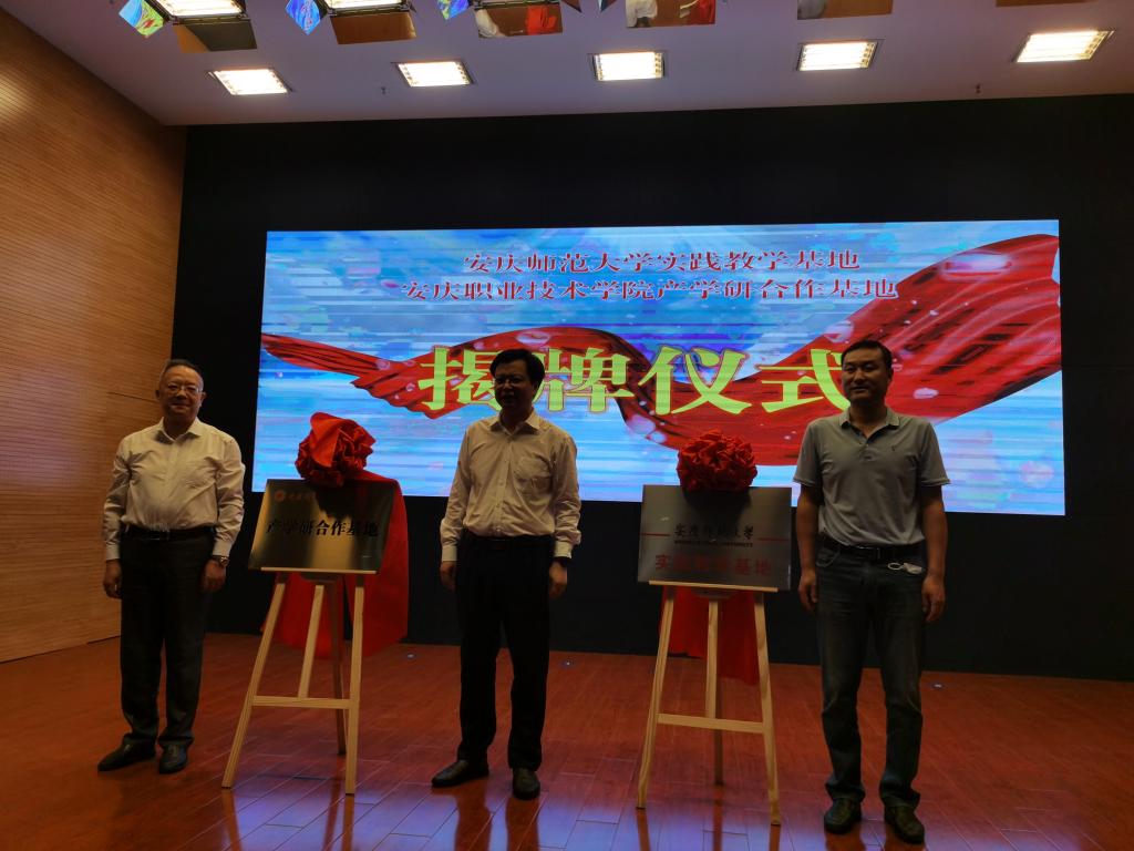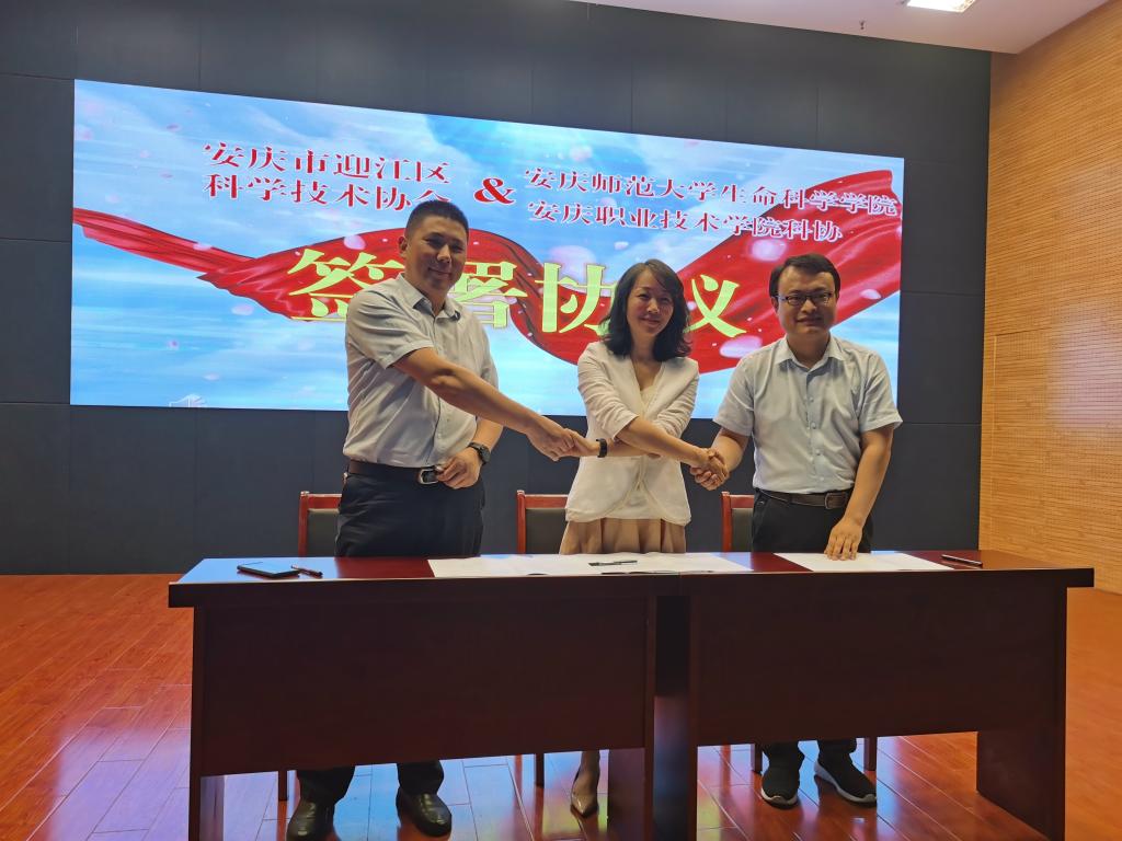 5月26日,黄瓜视频 院长周多奇、教务处副处长闻军、黄瓜视频 李从虎博士一行3人,赴安庆市科技馆参加了黄瓜视频 与迎江区科学技术协会的实践教学基地签约与揭牌仪式。
