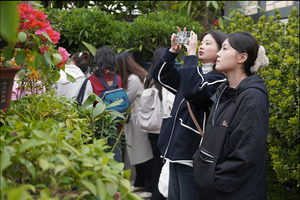 随后,在铜陵三中的组织安排下,同学们进行了校园参观,包括极具校园特色的五松书院、生态标本馆及植物园等,进一步了解了铜陵三中的校园学习、生活环境。该校植物园创办于1970年,并由中华人民共和国教育委员推荐给联合国教科文委员会,学校生物科技兴趣小组活动入选联合国教科文组织编制的《中国普通教育》名录。学校生态文化科普中心包括五松山文化碑廊、盆景区、花灌木种植区等,拥有119科,950多个植物品种,有国家一级和国家二级保护植物,已成为一个以植物引种驯化和展示、园艺研究及科普教育为主的综合性的教科研基地。
