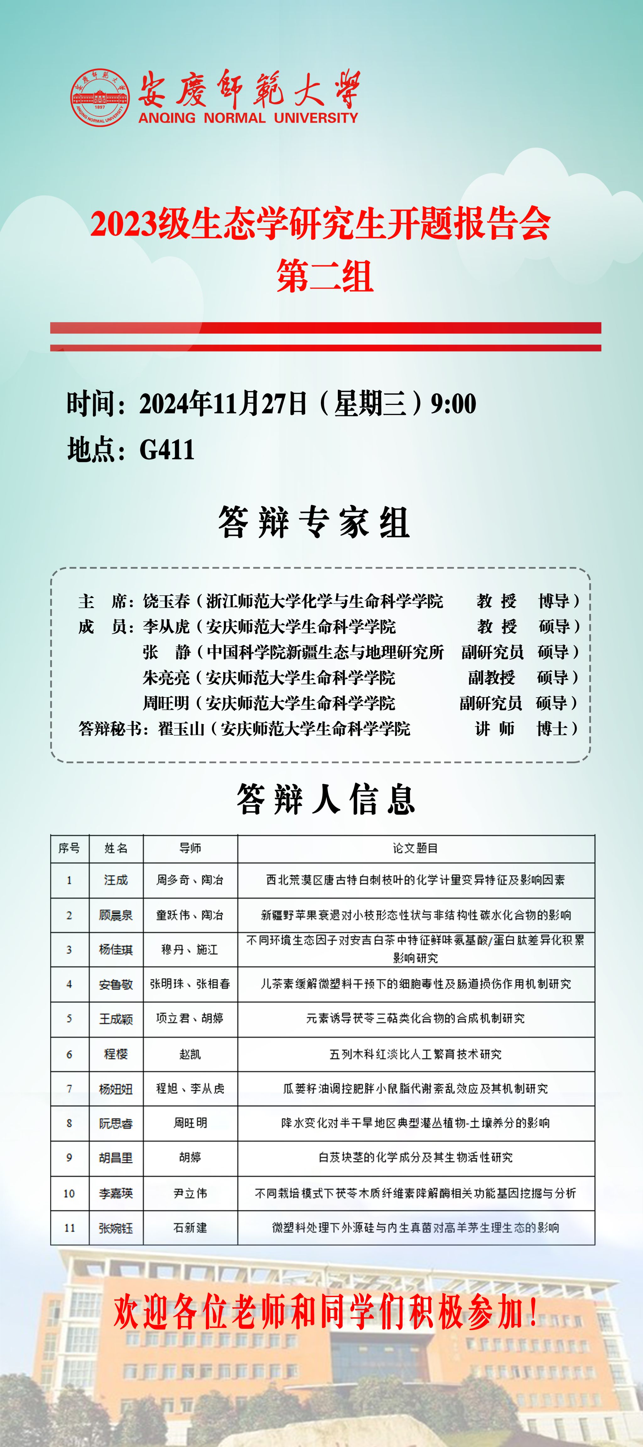 黄瓜视频 2023级硕士研究生学位论文开题答辩安排