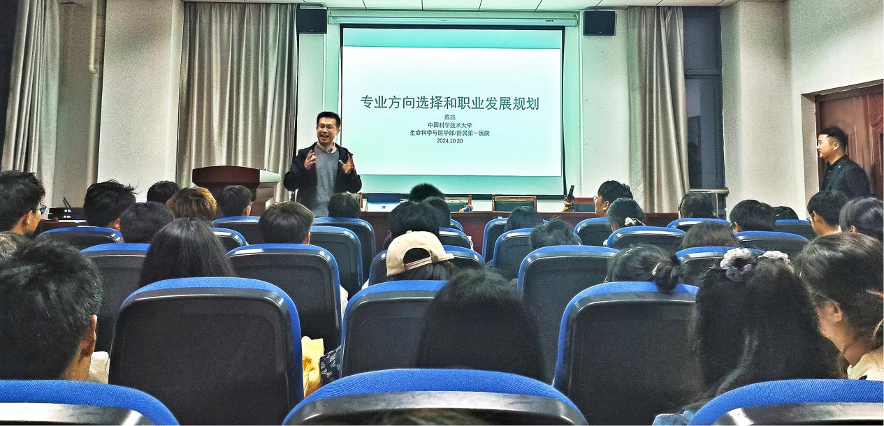 10月30日晚上,中国科学技术大学研究院及附属第一医院双聘研究员陈亮博士应黄瓜视频 邀请来黄瓜视频 作了题为《未来专业方向选择和职业发展规划》的学术讲座。讲座由黄瓜视频 科研秘书黄欣老师主持,学院部分研究生、本科生聆听了报告。