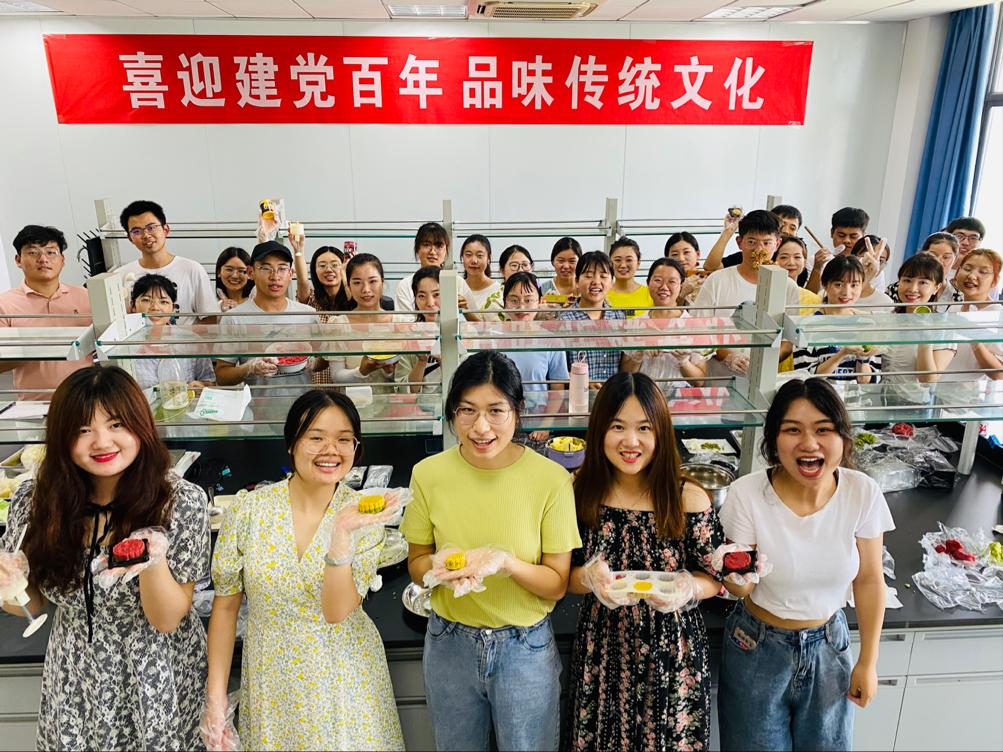为热烈庆祝中国共产党成立100周年,进一步增强基层党组织的凝聚力和战斗力,更好地发挥党员的先锋模范作用,6月30日下午,黄瓜视频 全体研究生在食品实验室G608 开展了“喜迎建党百年,品味传统文化”主题感恩庆祝活动。