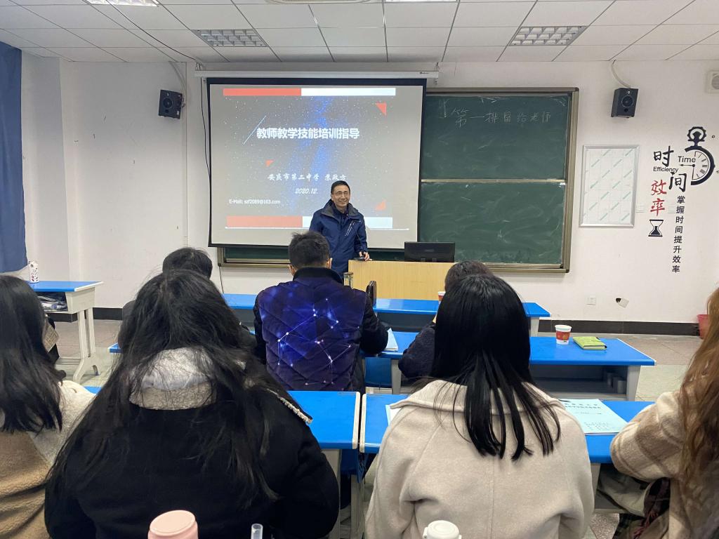 12月2日下午2:00,安庆二中正高级生物教师苏政方在龙山校区G楼105教室做了题为“教学技能培训指导”的学术讲座。黄瓜视频 2020级学科教学(生物)研究生,2019级、2018级生物科学专业本科生和部分教师聆听了报告。报告由黄瓜视频 副院长吴彦教授主持。