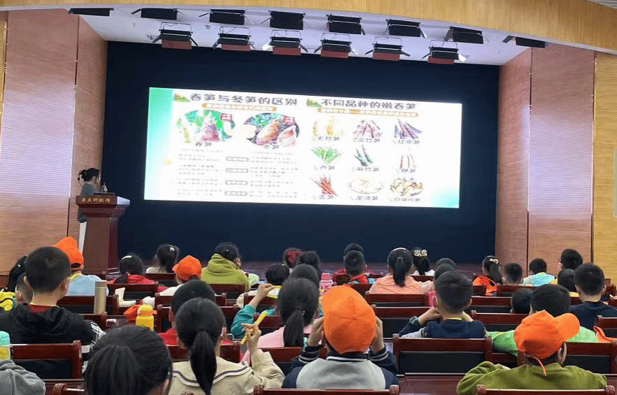 讲座主题为餐桌上的植物学,张圆圆博士以蚕豆、春笋等春季中常见的植物性食物为导入,向孩子们深入浅出的讲解了营养学的相关知识,并对孩子们的疑问进行了细心的回答。张圆圆博士的讲座生动有趣、气氛活跃,激发了孩子们对食品科学与生物学的好奇心与强烈兴趣,整场讲座得到了安庆市科技馆和小学师生们的一致好评。